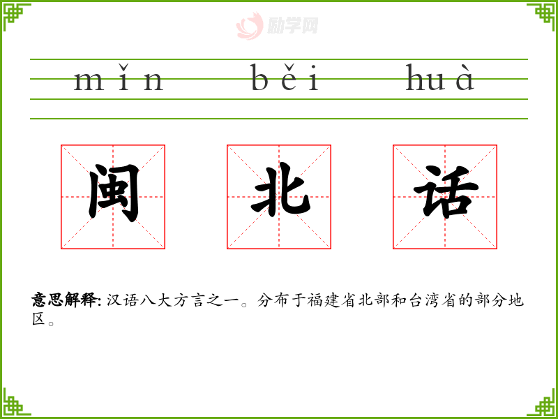 闽北话的意思是:汉语八大方言之一。分布于福建省北部和台湾省的部分地区。