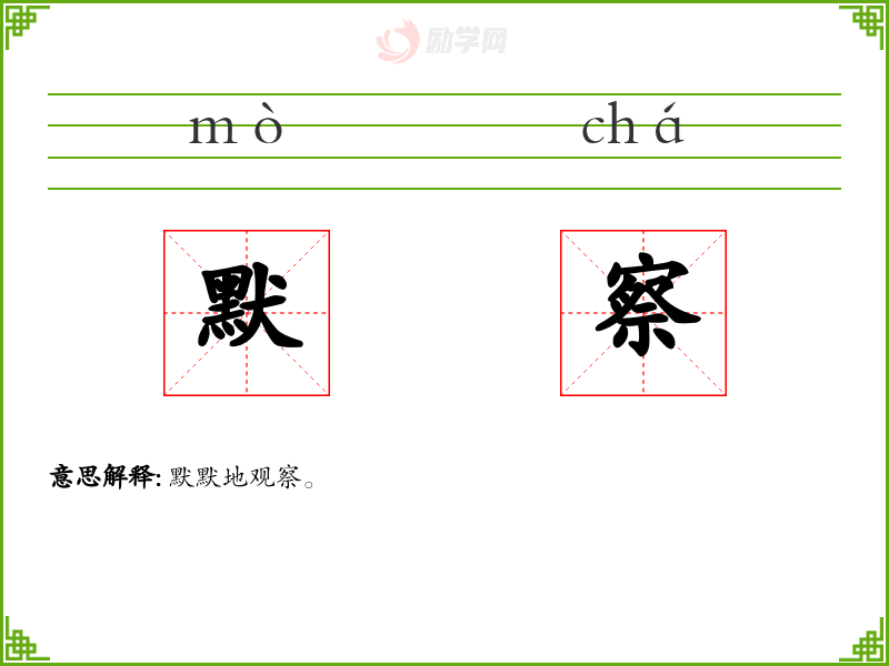 《说文》-察,复审也。 《楚辞·离骚》-览察草木。 贾谊《道术》-纤微皆审谓之察。 《吕氏春秋·本味》-察其所以然。 《史记·魏公子列传》-微察公子,公子颜色愈和。 宋·苏轼《石钟山记》-徐而察之,则山下皆石穴罅。