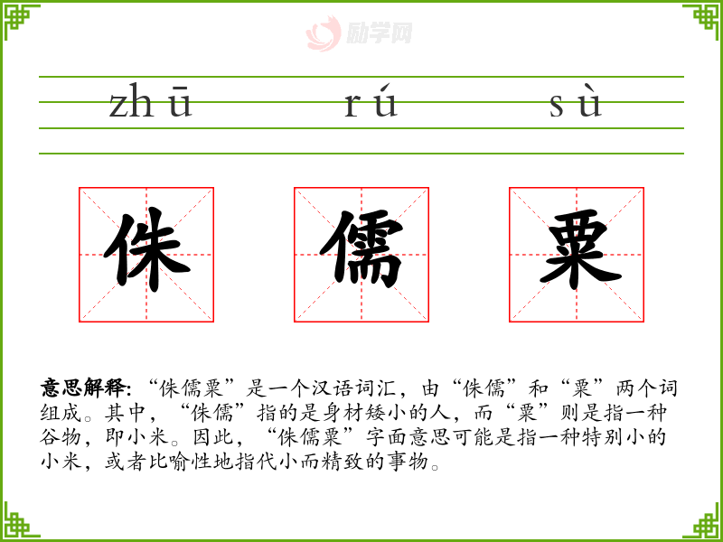 “侏儒”一词源自古代对身材矮小的人的称呼,而“粟”则是自古以来对小米的称呼。这两个词组合在一起,可能是后来创造的词汇,用以形容特别小的事物。