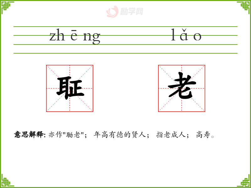 聇老的拼音是:zhēng lǎo