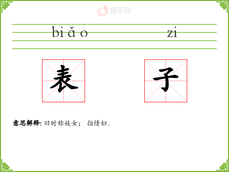 表子的拼音是:biǎo zi