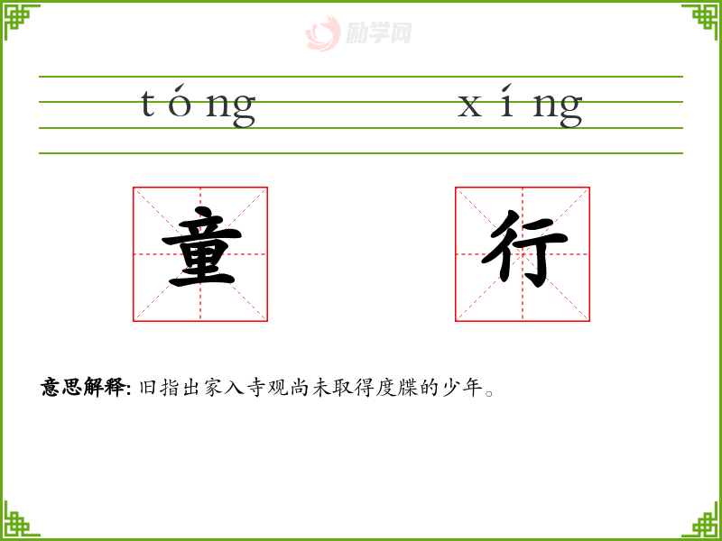 童行的意思是:旧指出家入寺观尚未取得度牒的少年。
