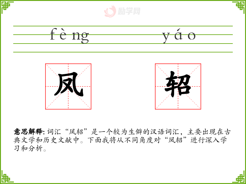 词汇“凤轺”是一个较为生僻的汉语词汇,主要出现在古典文学和历史文献中。下面我将从不同角度对“凤轺”进行深入学*和分析。