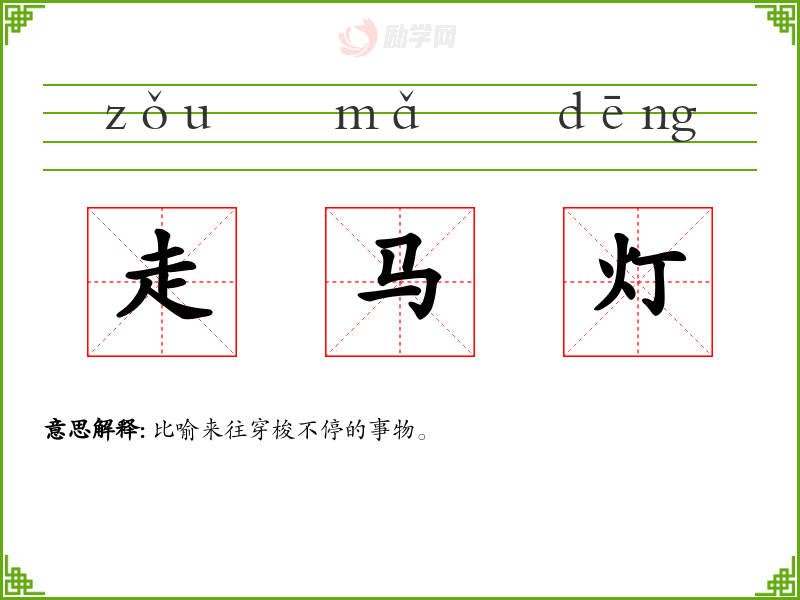 走马灯的意思是:比喻来往穿梭不停的事物。