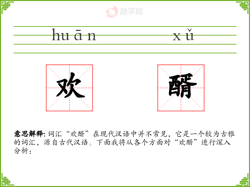 词汇“欢醑”在现代汉语中并不常见,它是一个较为古雅的词汇,源自古代汉语。下面我将从各个方面对“欢醑”进行深入分析: