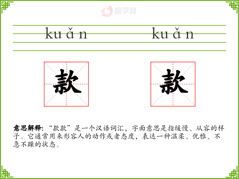 1.款款的拼音是什么?款款怎么读?