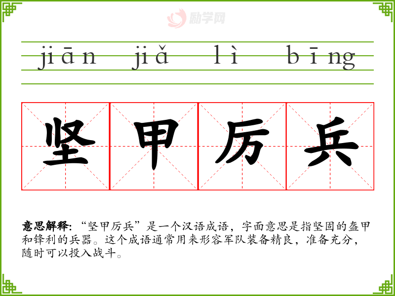 1.坚甲厉兵的拼音是什么?坚甲厉兵怎么读?