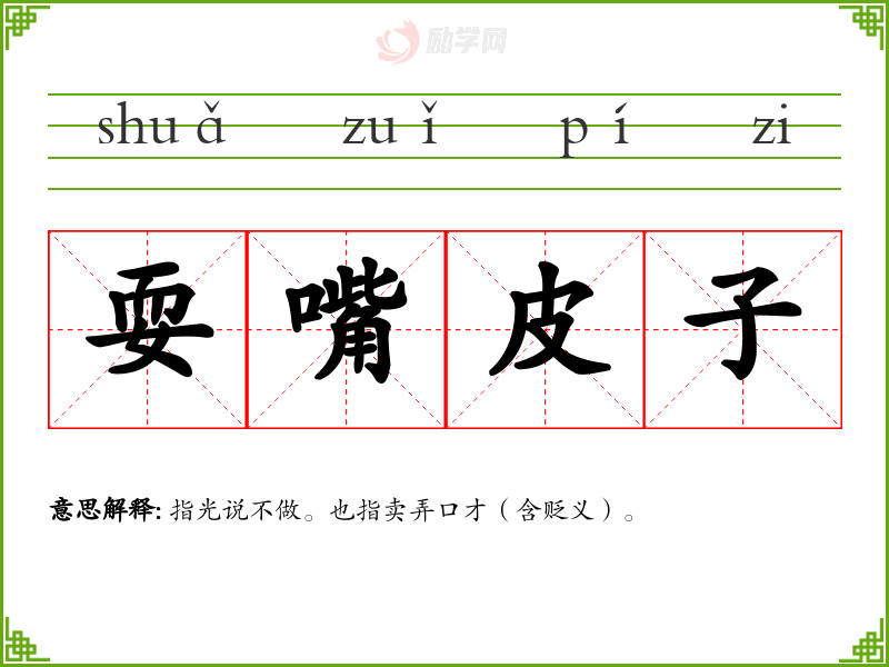 1.耍嘴皮子的拼音是什么?耍嘴皮子怎么读?