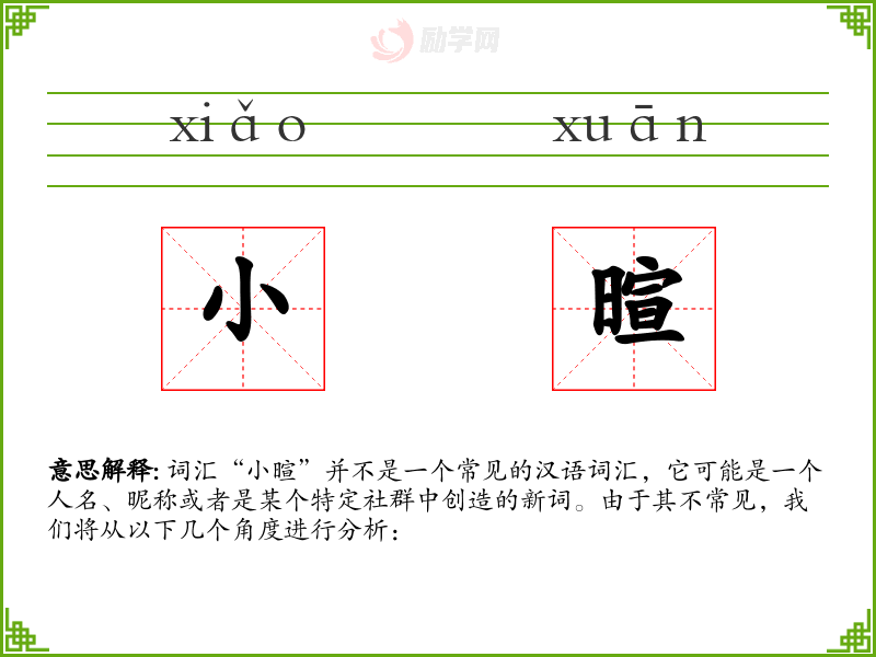 词汇“小暄”并不是一个常见的汉语词汇,它可能是一个人名、昵称或者是某个特定社群中创造的新词。由于其不常见,我们将从以下几个角度进行分析: