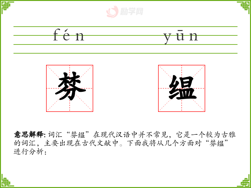 词汇“棼缊”在现代汉语中并不常见,它是一个较为古雅的词汇,主要出现在古代文献中。下面我将从几个方面对“棼缊”进行分析:
