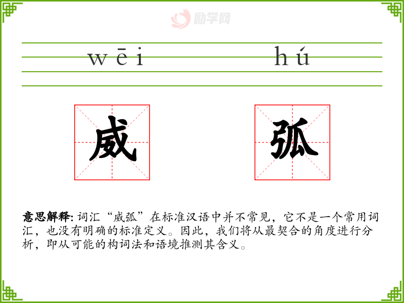 词汇“威弧”在标准汉语中并不常见,它不是一个常用词汇,也没有明确的标准定义。因此,我们将从最契合的角度进行分析,即从可能的构词法和语境推测其含义。