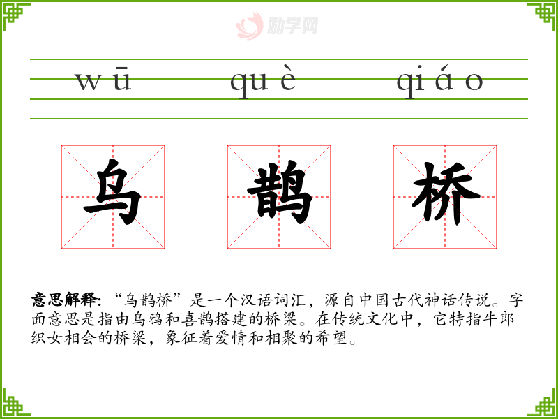 1.乌鹊桥的拼音是什么?乌鹊桥怎么读?