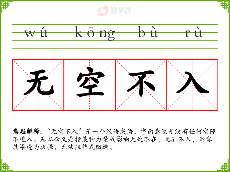 “无空不入”这个成语的词源较为模糊,但其结构和意义在中国古代文献中已有体现。随着时间的推移,这个成语的使用逐渐固定,成为描述广泛渗透和影响的常用表达。