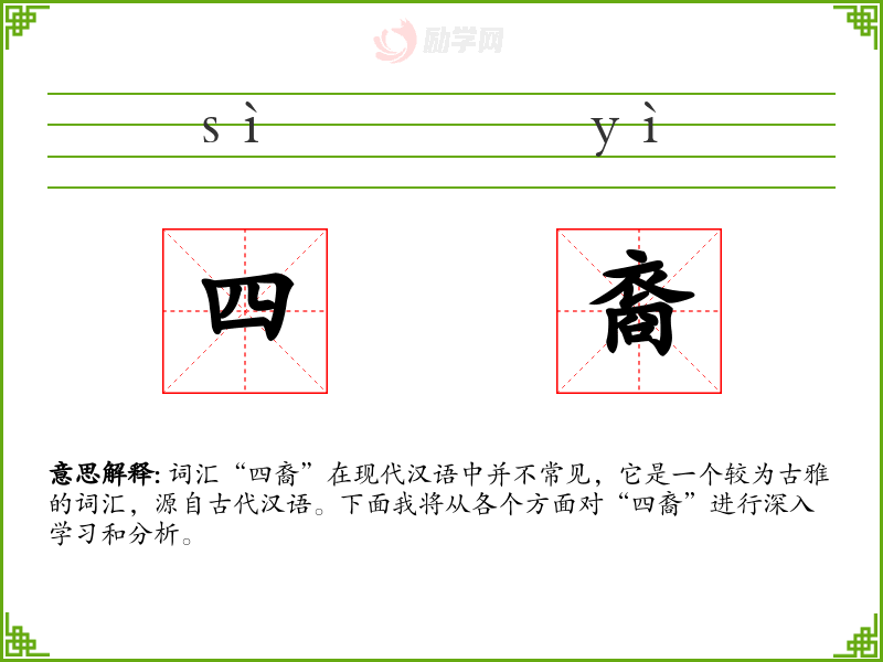 词汇“四裔”在现代汉语中并不常见,它是一个较为古雅的词汇,源自古代汉语。下面我将从各个方面对“四裔”进行深入学*和分析。