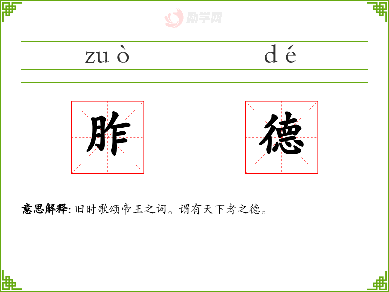 胙德的意思是:旧时歌颂帝王之词。谓有天下者之德。