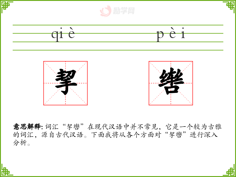 词汇“挈辔”在现代汉语中并不常见,它是一个较为古雅的词汇,源自古代汉语。下面我将从各个方面对“挈辔”进行深入分析。
