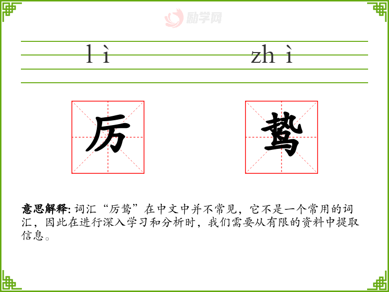 词汇“厉鸷”在中文中并不常见,它不是一个常用的词汇,因此在进行深入学习和分析时,我们需要从有限的资料中提取信息。