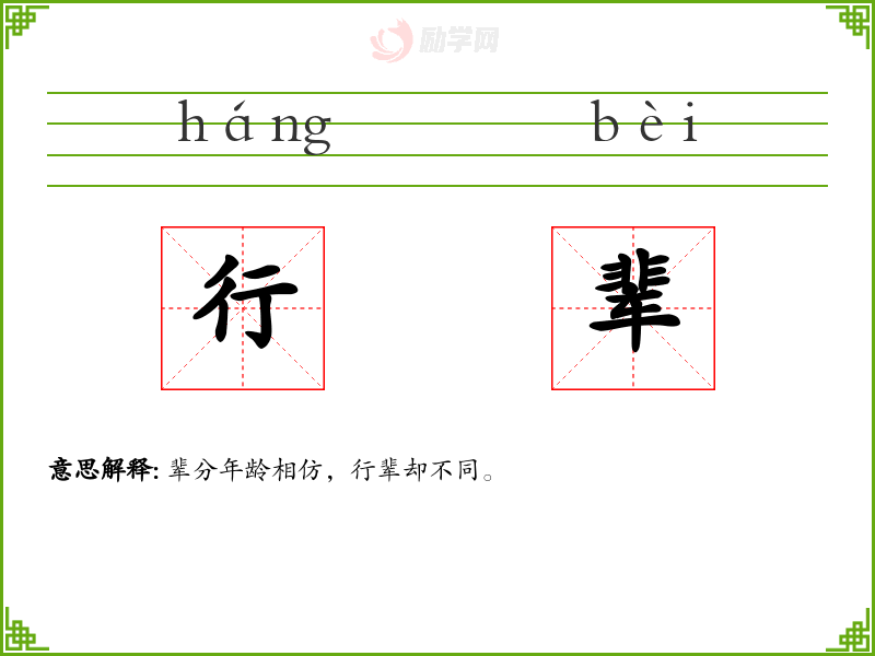 行辈的意思是:辈分年龄相仿,行辈却不同。