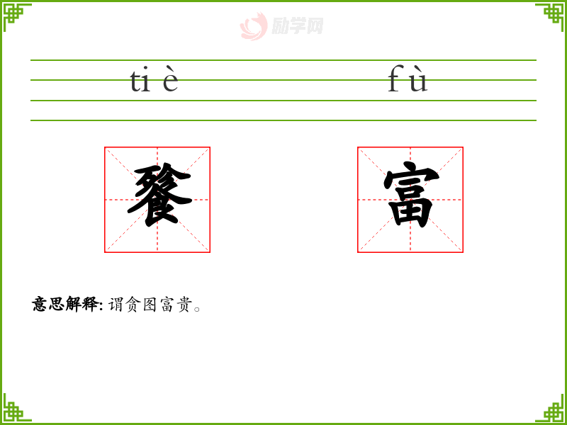 富甲、 富岁、 富殖、 富室、 富贵浮云、 富力、 富赡、 富贾