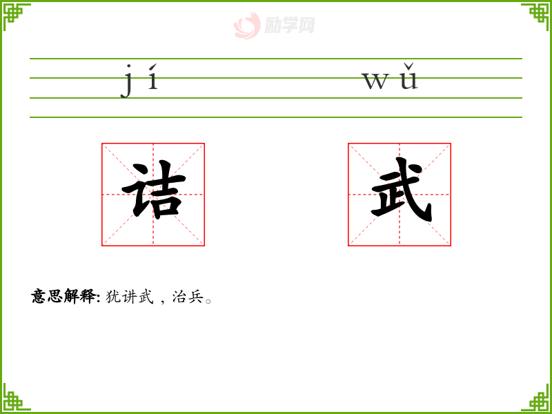 诘武的意思是:犹讲武﹐治兵。