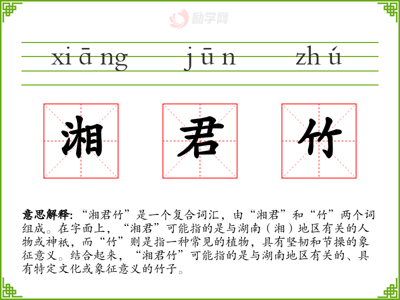 1.湘君竹的拼音是什么?湘君竹怎么读?