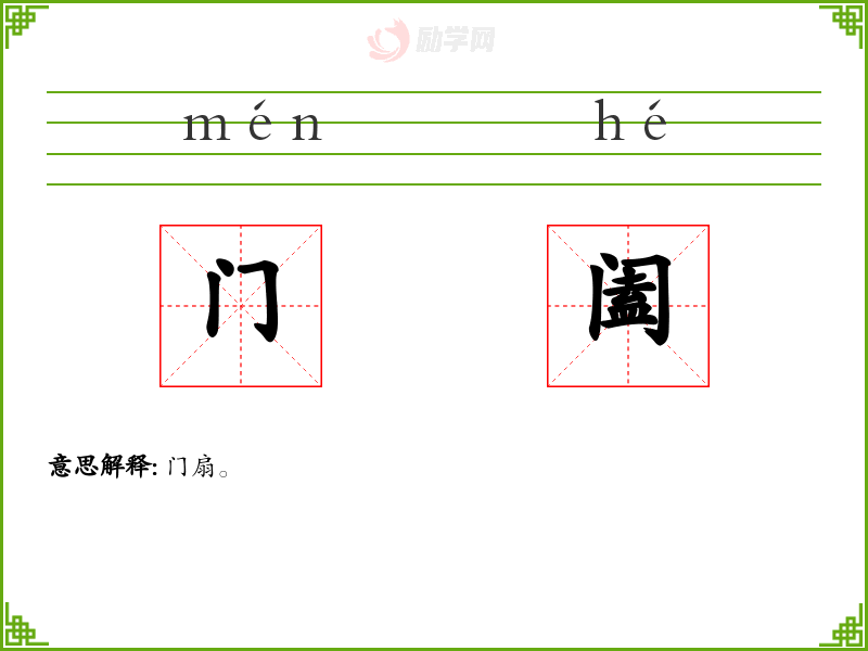 (象形。甲骨文字形,象门形。“门”是汉字的一个部首。本义:双扇门,门)。