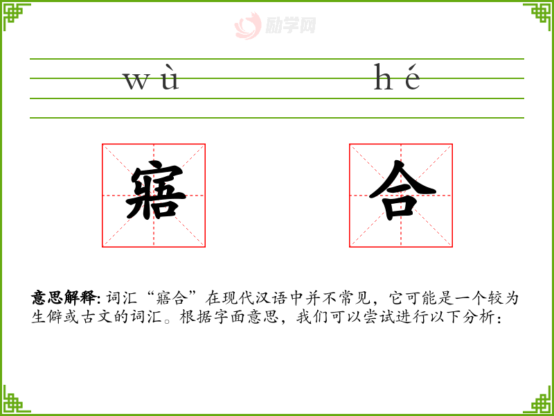 词汇“寤合”在现代汉语中并不常见,它可能是一个较为生僻或古文的词汇。根据字面意思,我们可以尝试进行以下分析: