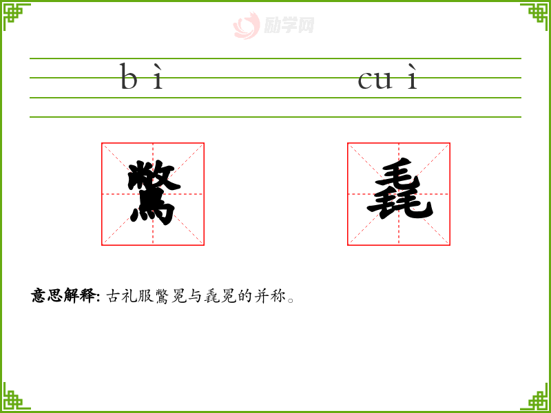 鷩毳的意思是:古礼服鷩冕与毳冕的并称。