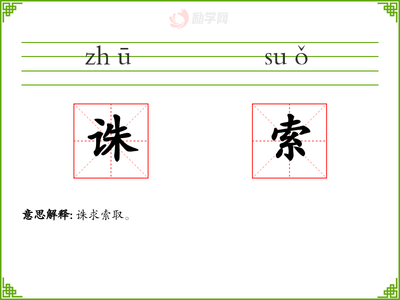 《说文》-索,草有茎叶可作绳索。 司马迁《报任安书》-其次关木索,被箠楚受辱。 《列士·天瑞》-鹿裘带索,鼓琴而歌。 《后汉书·段颍传》-追讨南度河,使军吏田晏、夏育慕先登,悬索相引。复战于罗亭,大破之。 《诗·豳风·七月》-昼尔于茅,宵而索綯。