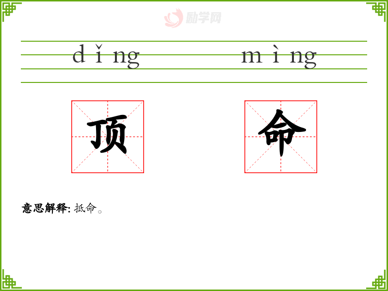 《说文》。朱骏声按:“在事为令,在言为命,散文则通,对文则别。令当训使也,命当训发号也。”-命,使也。 汉·蔡邕《独断》-出君下臣名曰命。 《贾子·礼容》-语下命者,制令也。 《文选·闲居赋序》注-凡尊者之言曰命。 《诗·大雅·卷阿》-维君子命。 《仪礼·燕礼》-某固辞不得命。 《吕氏春秋·孟春纪》。注:“命,令也。”-命田舍东郊。 《列子·汤问》-命夸娥氏二子负二山。 《资治通鉴·赤壁之战》-令将军诚能命猛将统兵数万。 清·周容《芋老人传》-命妪煮芋。 白居易《琵琶行序》-遂命酒,使快弹数曲。