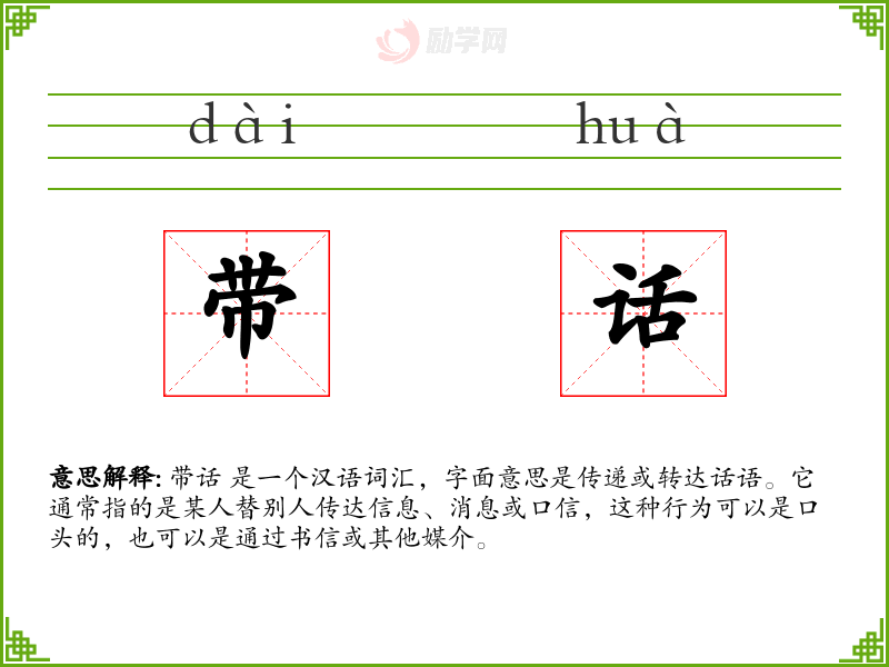 1.带话的拼音是什么?带话怎么读?