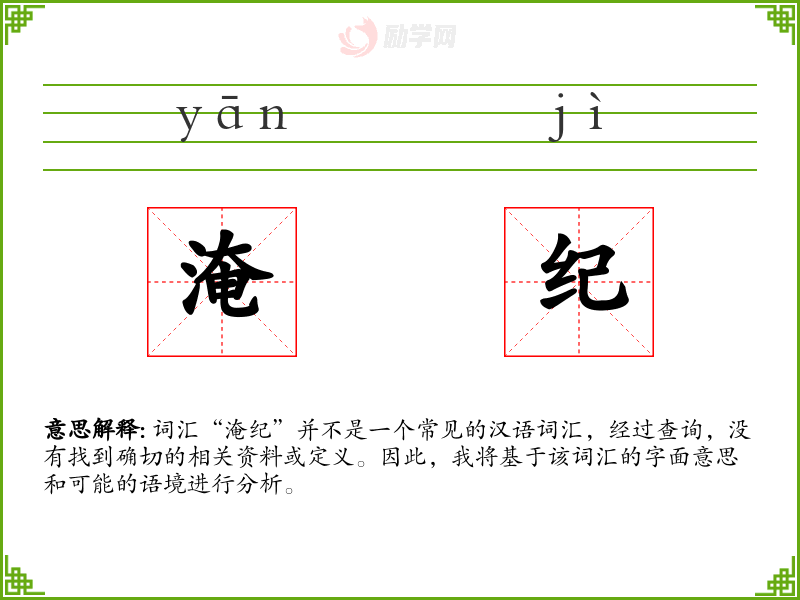 由于“淹纪”不是一个标准词汇,我们可以尝试从字面意思来理解: