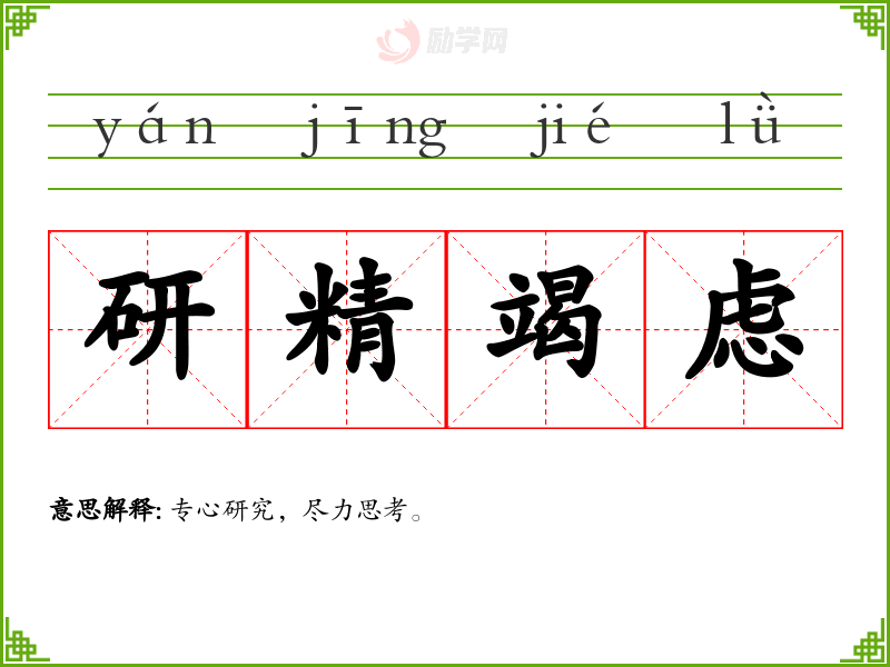 1.研精竭虑的拼音是什么?研精竭虑怎么读?