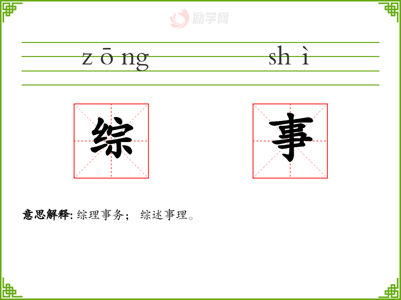 (形声。从糸(mì),宗声(zòng)。 ①本义:织布机上使经线上下交错以受纬线的一种装置 ②编织。聚总,集合)。