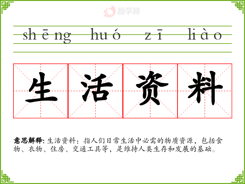 - 口语:在日常对话中,生活资料是一个常用词汇,如“我们需要更多的生活资料来改善生活质量。”