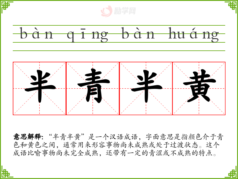 1.半青半黄的拼音是什么?半青半黄怎么读?