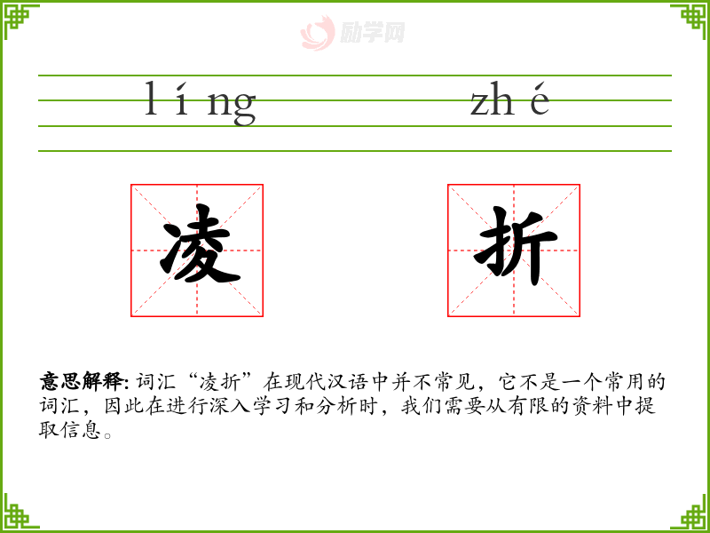 词汇“凌折”在现代汉语中并不常见,它不是一个常用的词汇,因此在进行深入学*和分析时,我们需要从有限的资料中提取信息。