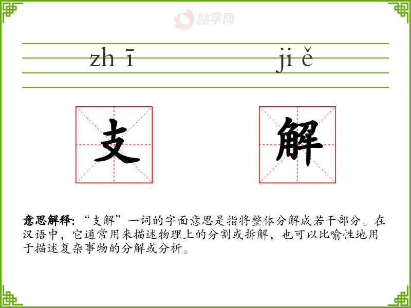 - 文学:在文学作品中,“支解”可能用于描述对某个复杂情节或人物心理的深入剖析。