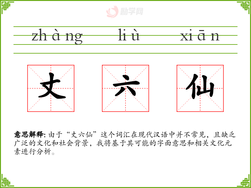 由于“丈六仙”这个词汇在现代汉语中并不常见,且缺乏广泛的文化和社会背景,我将基于其可能的字面意思和相关文化元素进行分析。