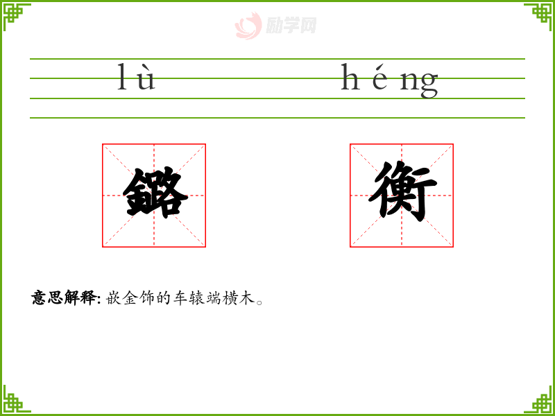 鏴衡的意思是:嵌金饰的车辕端横木。
