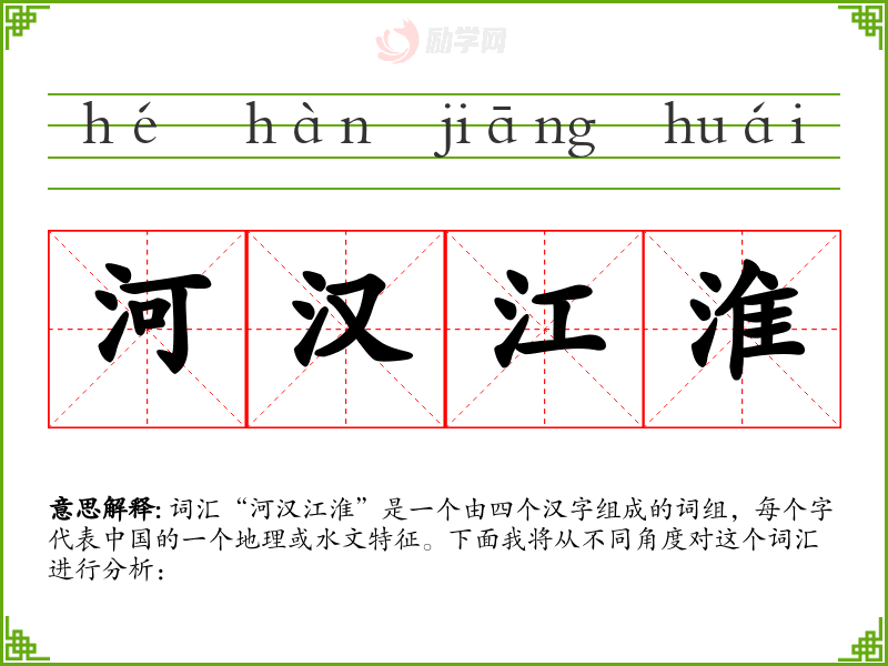 1.河汉江淮的拼音是什么?河汉江淮怎么读?