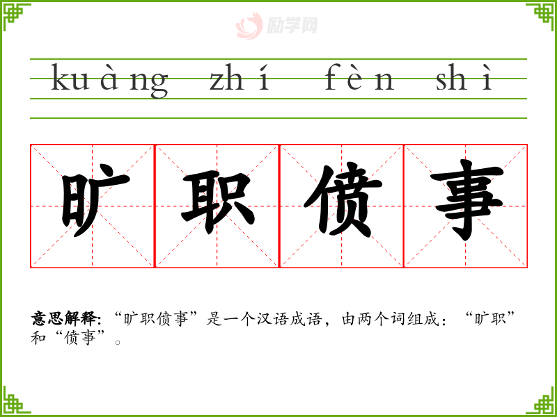 1.旷职偾事的拼音是什么?旷职偾事怎么读?