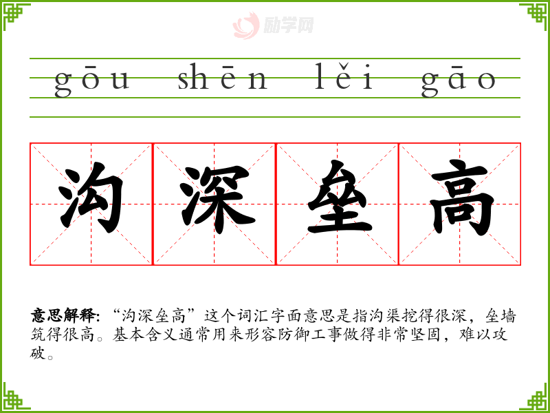 1.沟深垒高的拼音是什么?沟深垒高怎么读?