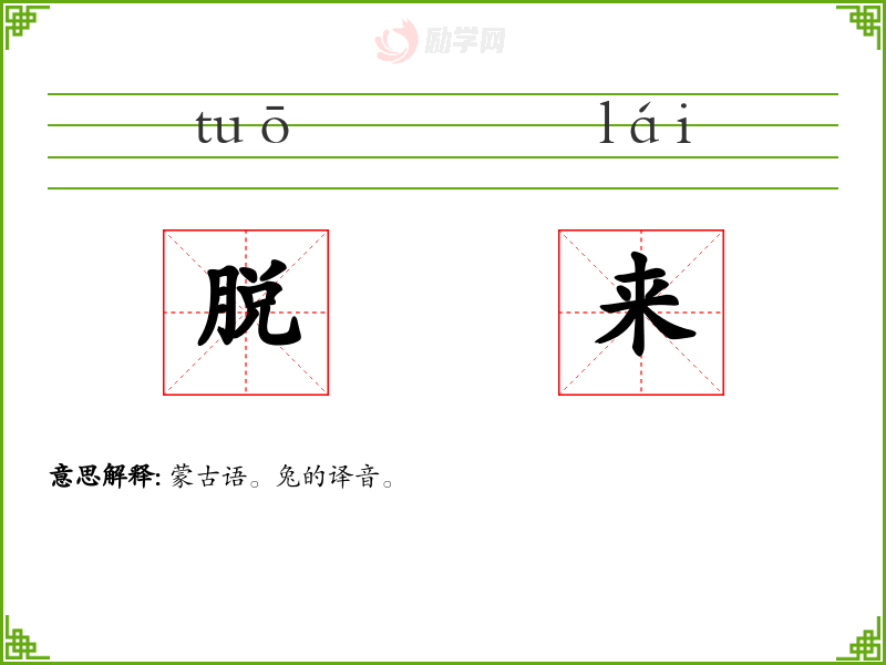 脱来的意思是:蒙古语。兔的译音。