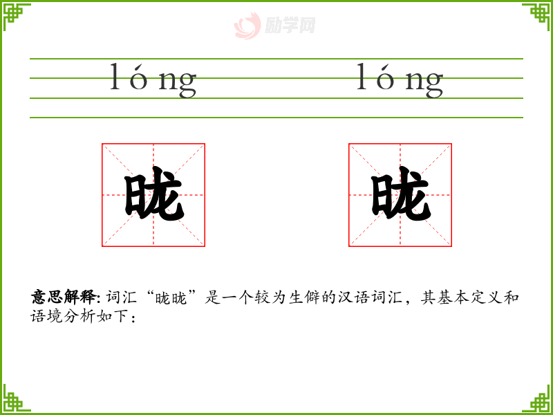 词汇“昽昽”是一个较为生僻的汉语词汇,其基本定义和语境分析如下: