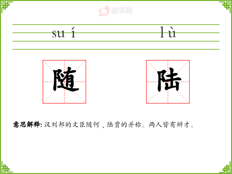 随陆的意思是:汉刘邦的文臣随何﹑陆贾的并称。两人皆有辩才。