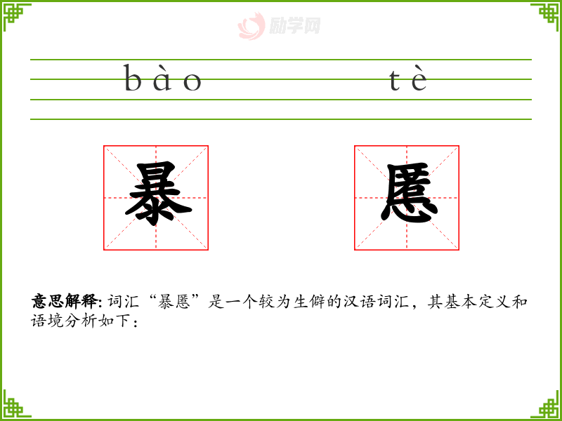 词汇“暴慝”是一个较为生僻的汉语词汇,其基本定义和语境分析如下: