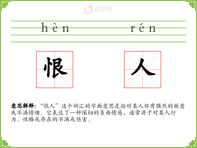 1.恨人的拼音是什么?恨人怎么读?