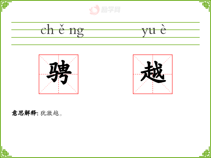 骋越的意思是:犹激越。