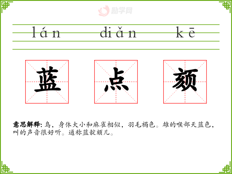 1.蓝点颏的拼音是什么?蓝点颏怎么读?